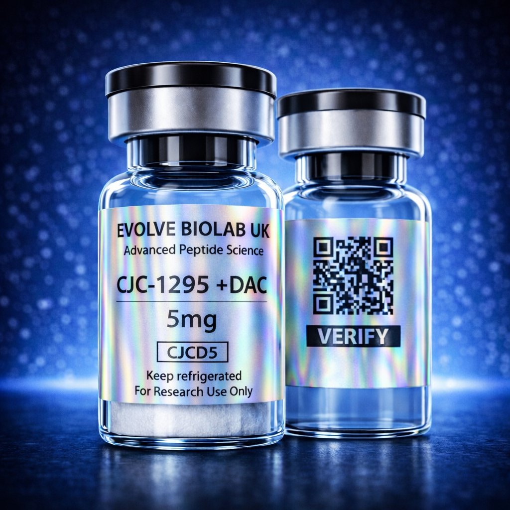 CJC-1295 with DAC is a synthetic peptide commonly studied in laboratory research involving growth hormone-releasing hormone signalling and downstream GH/IGF-1 response pathways.